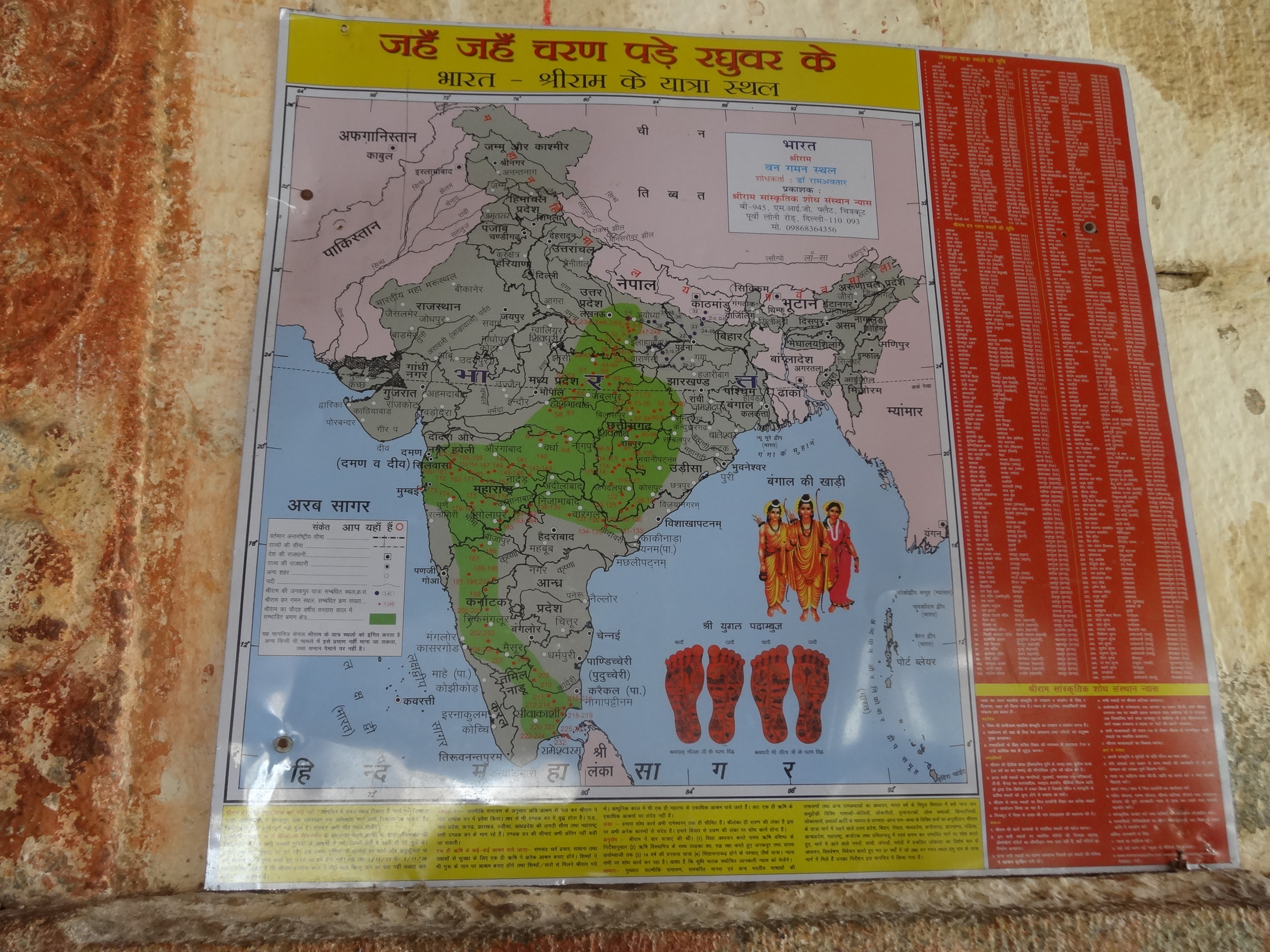 Sri Malyavanta Raghunatha Swamy Temple is on the road toward the Kampli. It is here that Lord Rama and Laxmana stayed during the 4 months of rainy season (chatur masya) after Sugriva had been coronated on the throne. Lord Rama and Laxmana also stayed here when Hanuman and others went in search for Sita. The deities of Lord Rama and Laxmana are in sitting positions, with a standing Sita, and Hanuman Ji kneeling near Them carved from a boulder. These are the only Deities of Lord Ramacandra in sitting position. The mood here depict how Rama and Laxmana were discussing the means to save kidnapped Sita. Down the hill from here heading west is Madhuvan, which has a little temple of Hanuman. It was here where the monkeys halted to enjoy the gardens of fruit after Sita was found.